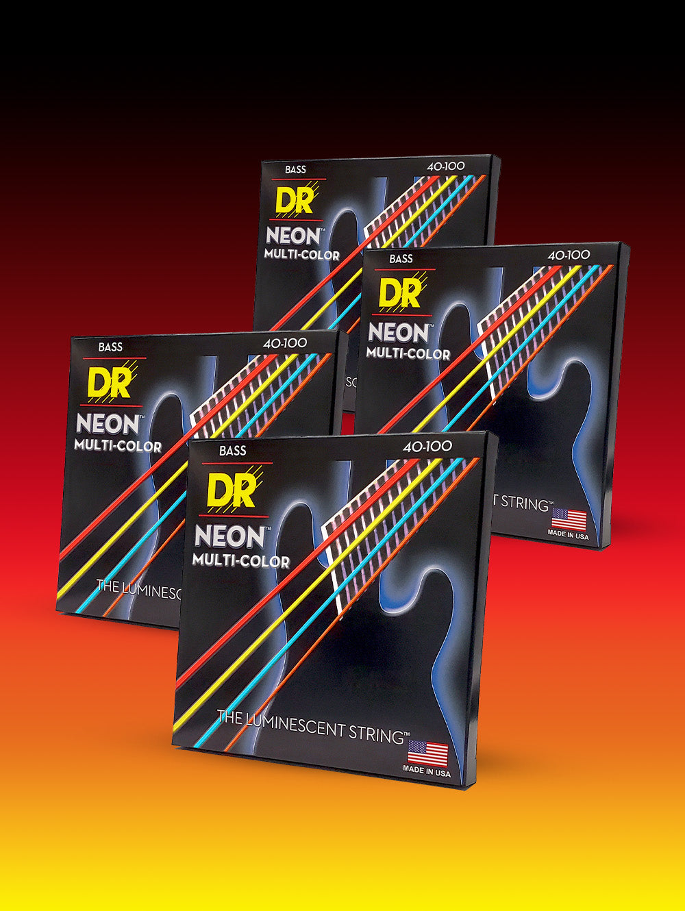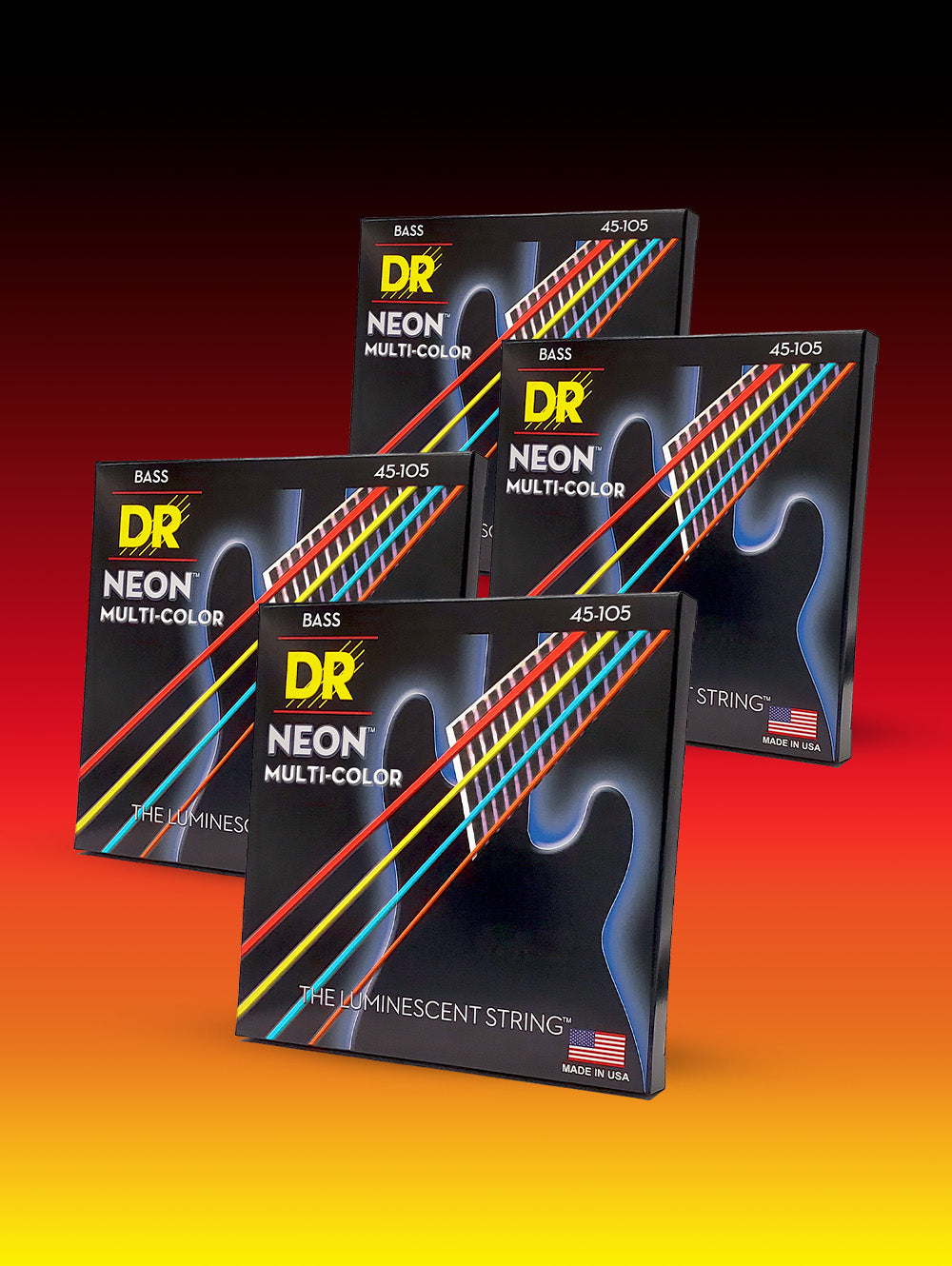 Hi-Def NEON™ Multi-Color Color Coated 4-String Bass Set